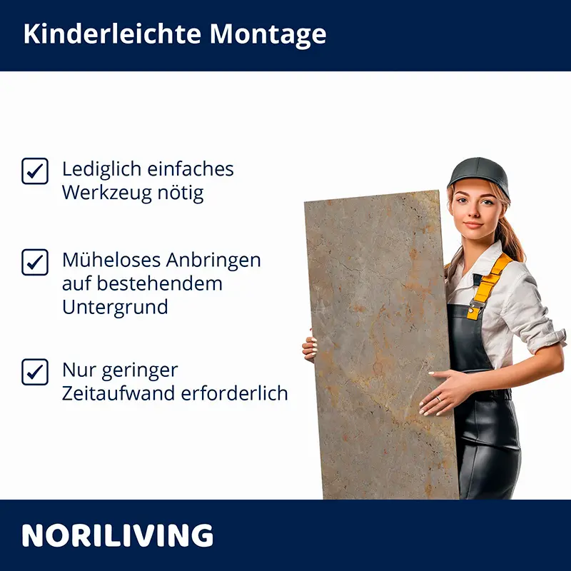 - Weniger Staub, Lärm, Schmutz und Abfall im Vergleich zur herkömmlichen Fliesenverlegung