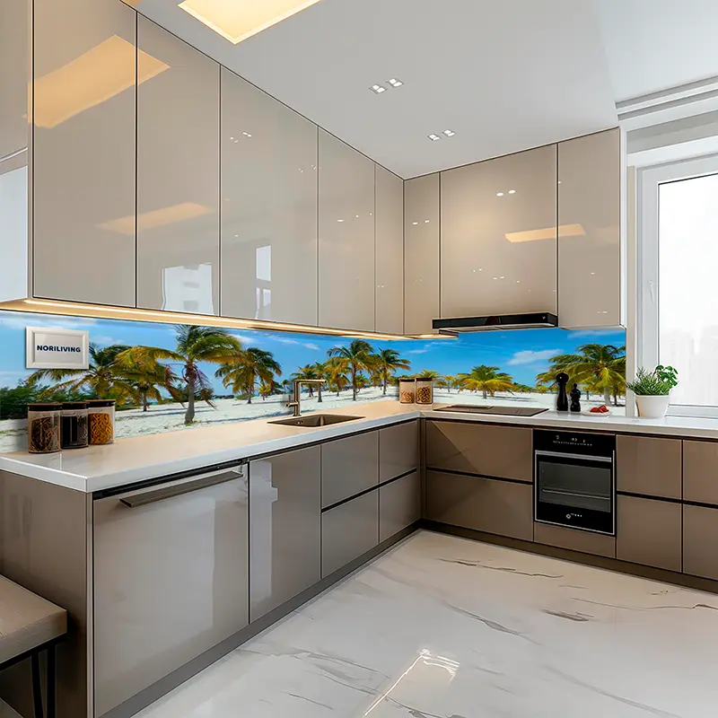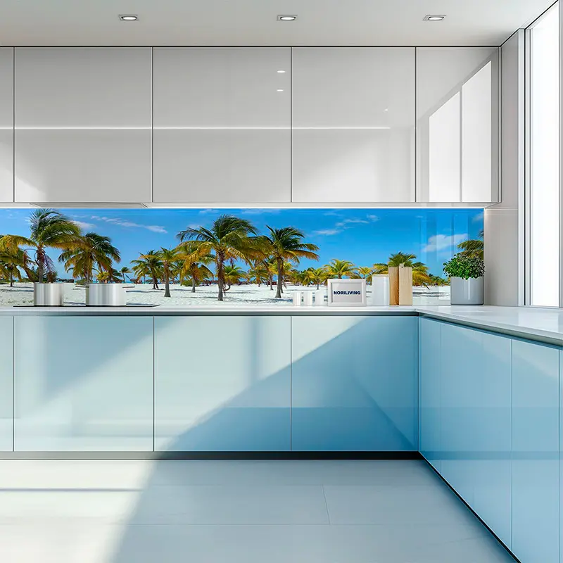 Produktinformationen "Küchenrückwand Echtglasoptik Profiline Tropischer Strand mit Palmen 086"
