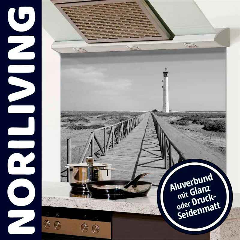 Spritzschutz Küche - Herd Alu Leuchtturm am Strand 589 schwarz-weiß