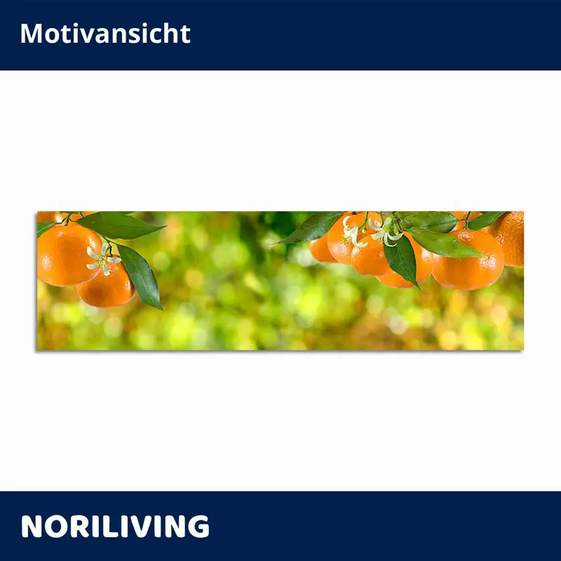 Produktinformationen "Fliesenspiegel Alu Frische Mandarinen am Zweig vor grünem Bokeh 476"