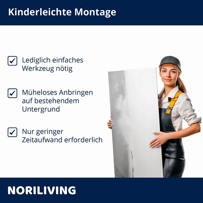 - Großflächige Anbringung – nahezu fugenlos