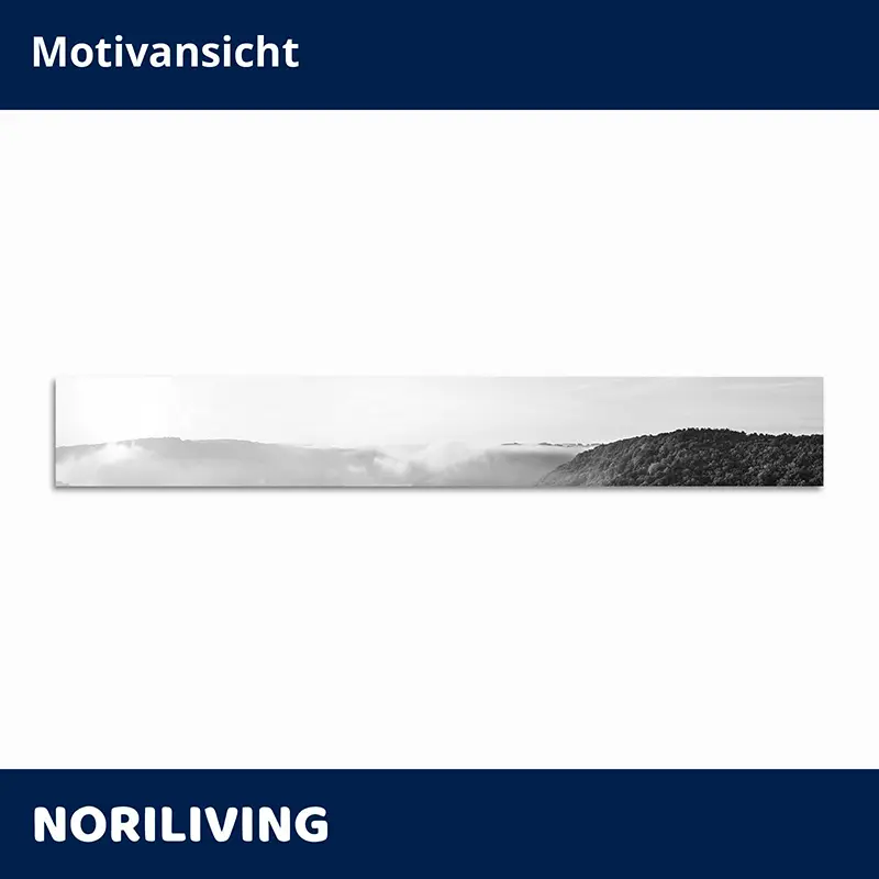 Produktinformationen "Fliesenspiegel Alu Sonnenaufgang mit Nebel in den Bergen 033 schwarz-weiß"