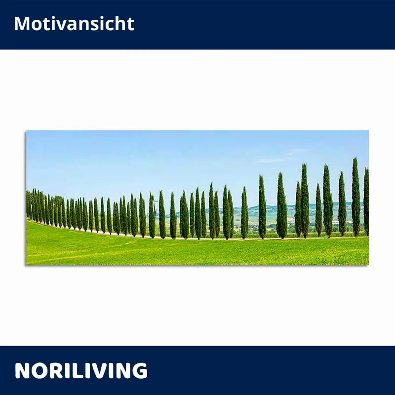 Produktinformationen "Fliesenspiegel Alu Zypressenallee in grüner Hügellandschaft 110"