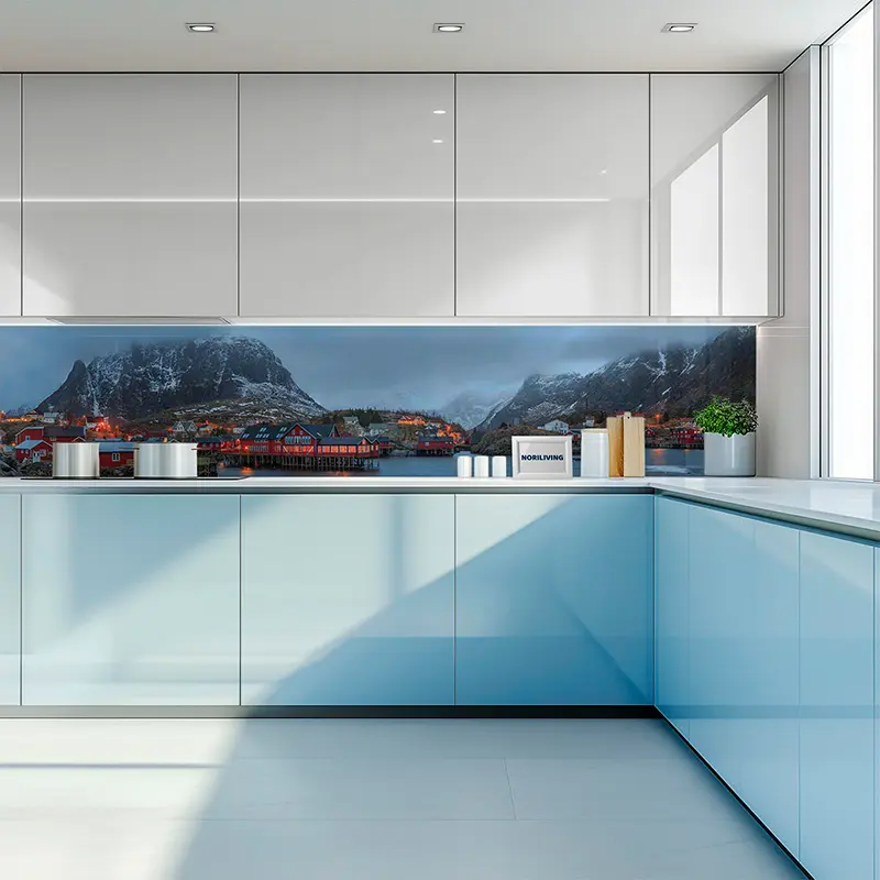 Produktinformationen "Küchenrückwand Echtglasoptik Profiline Abenddämmerung in einem Fischerdorf Norwegen 324"