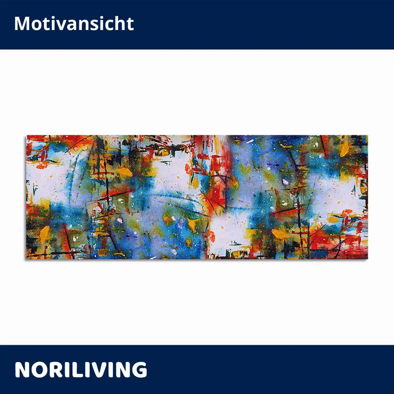 Produktinformationen "Küchenrückwand Echtglasoptik Profiline Abstraktes Farbenspiel in Blau, Rot und Gelb 129"
