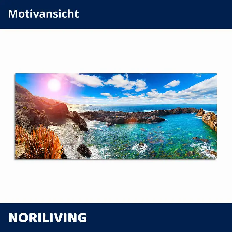 Produktinformationen "Küchenrückwand Echtglasoptik Profiline Felsenbucht mit kristallklarem Meer und Sonnenlicht 649"