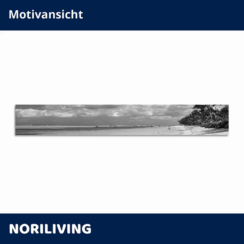 Produktinformationen "Küchenrückwand Echtglasoptik Profiline Hängematte im türkisfarbenen Wasser Mauritius 622 schwarz-weiß"