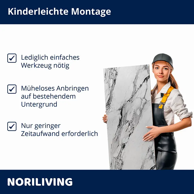 - Weniger Staub, Lärm, Schmutz und Abfall im Vergleich zur herkömmlichen Fliesenverlegung