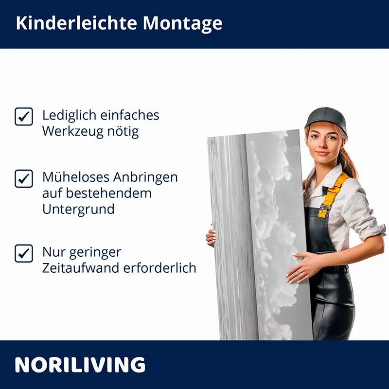 - Die Platten lassen sich auf nahezu jedem Untergrund befestigen. Wichtig ist, dass die Fläche eben und glatt ist. Bei Fliesen müssen vor der Montage Seifenreste und Verschmutzungen gründlich entfernt werden. Anschließend die Fliesen fettfrei reinigen und vollständig trocknen lassen.