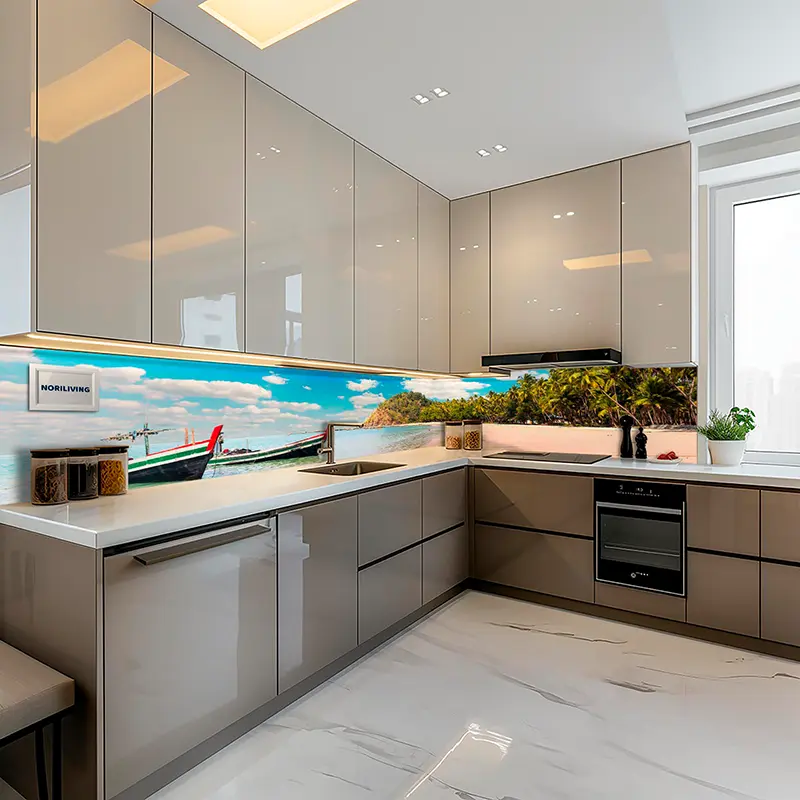 Produktinformationen "Küchenrückwand Echtglasoptik Profiline Tropischer Strand mit Booten 661"