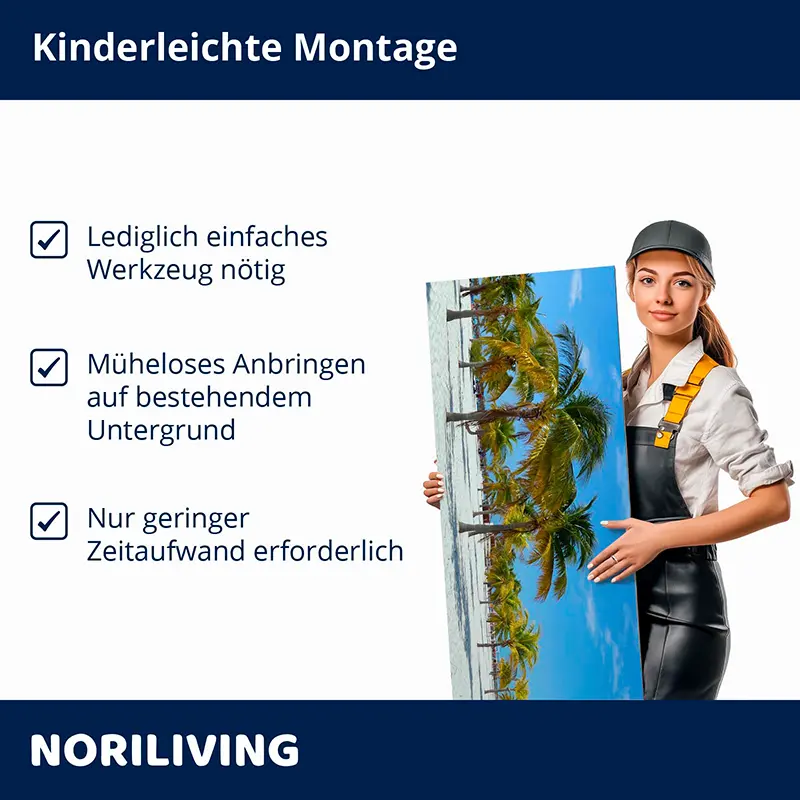 - Die Platten lassen sich auf nahezu jedem Untergrund befestigen. Wichtig ist, dass die Fläche eben und glatt ist. Bei Fliesen müssen vor der Montage Seifenreste und Verschmutzungen gründlich entfernt werden. Anschließend die Fliesen fettfrei reinigen und vollständig trocknen lassen.