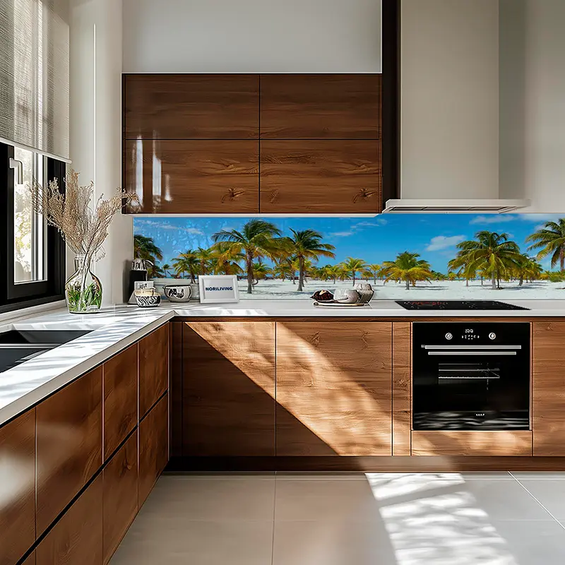 Produktinformationen "Küchenrückwand Echtglasoptik Profiline Tropischer Strand mit Palmen 086"