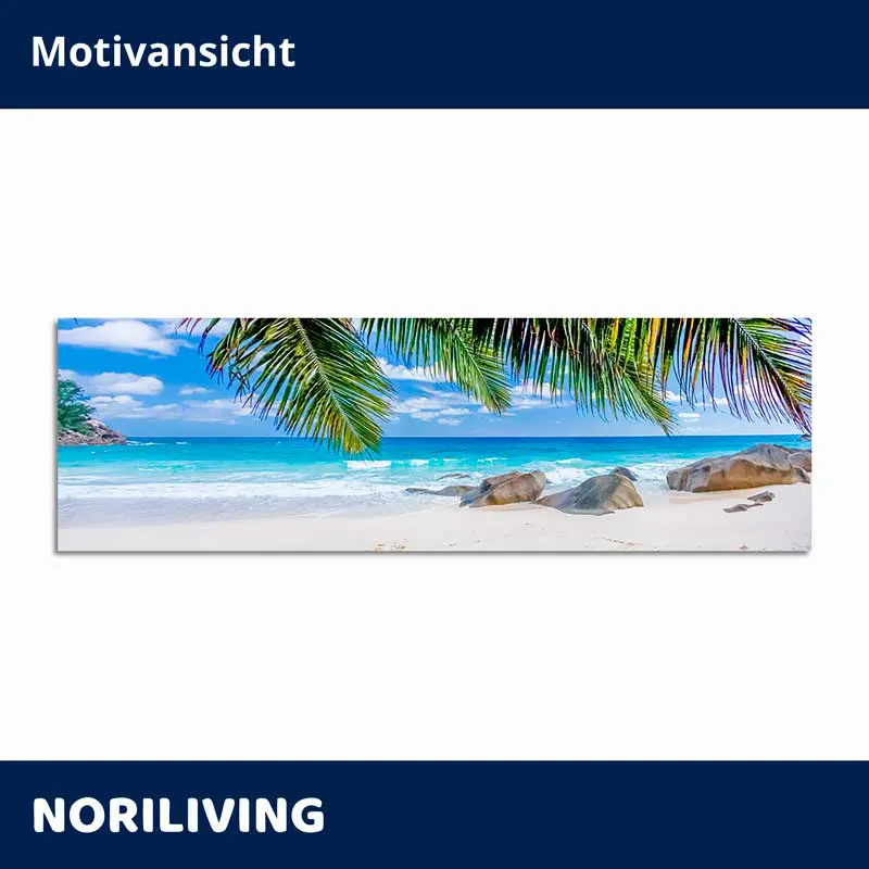Produktinformationen "Küchenrückwand Echtglasoptik Profiline Tropischer Traumstrand mit Palmen und Felsen 753"