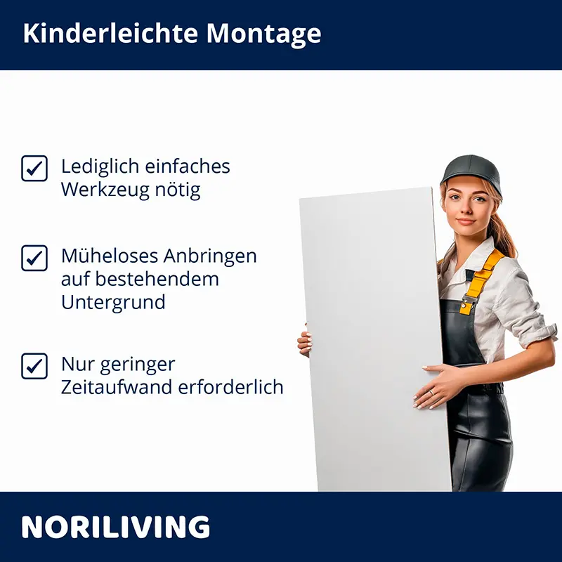 - Großflächige Anbringung – nahezu fugenlos
