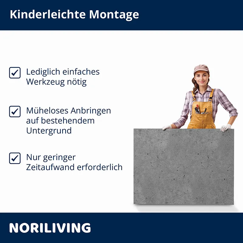 - Weniger Staub, Lärm, Schmutz und Abfall im Vergleich zur herkömmlichen Fliesenverlegung