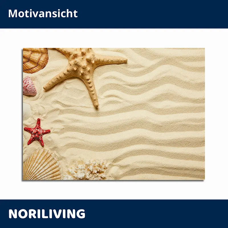 Produktinformationen "Wohnzimmerrückwand Alu Seesterne und Muscheln am Strand 240"