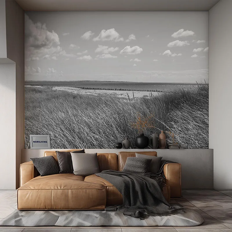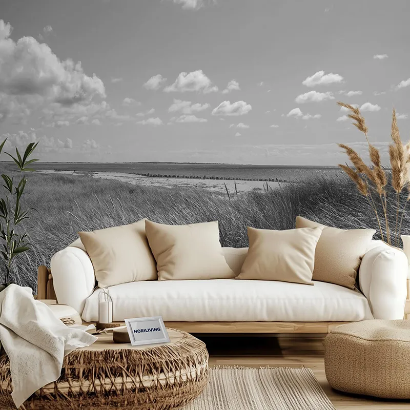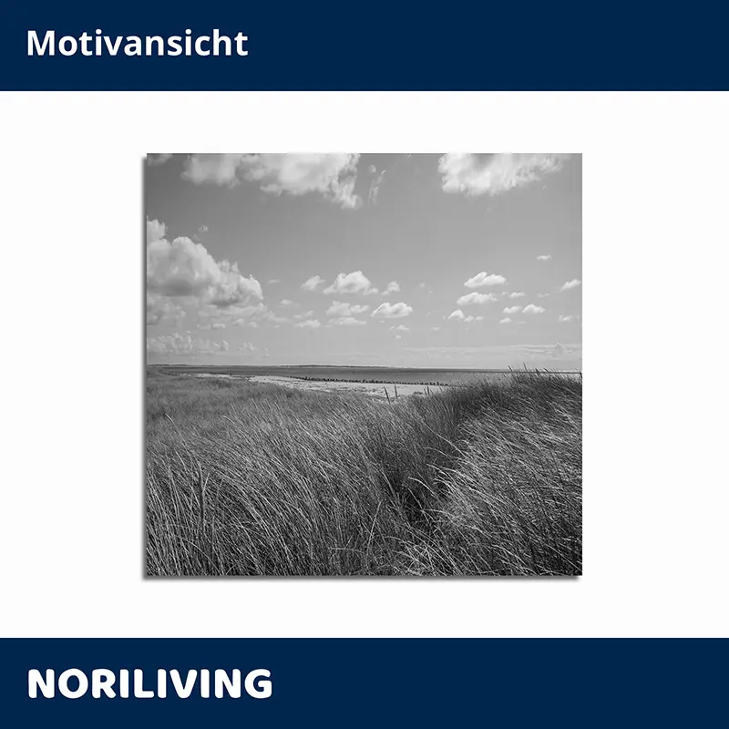 Produktinformationen "Wohnzimmerrückwand Alu Strand und Grasdünen auf der Insel Sylt 096 schwarz-weiß"
