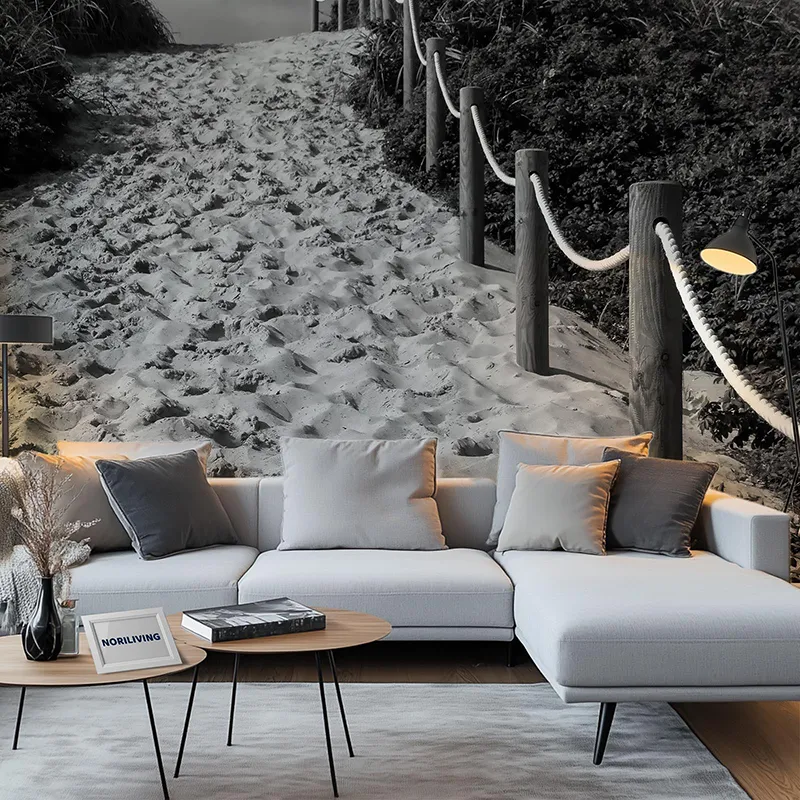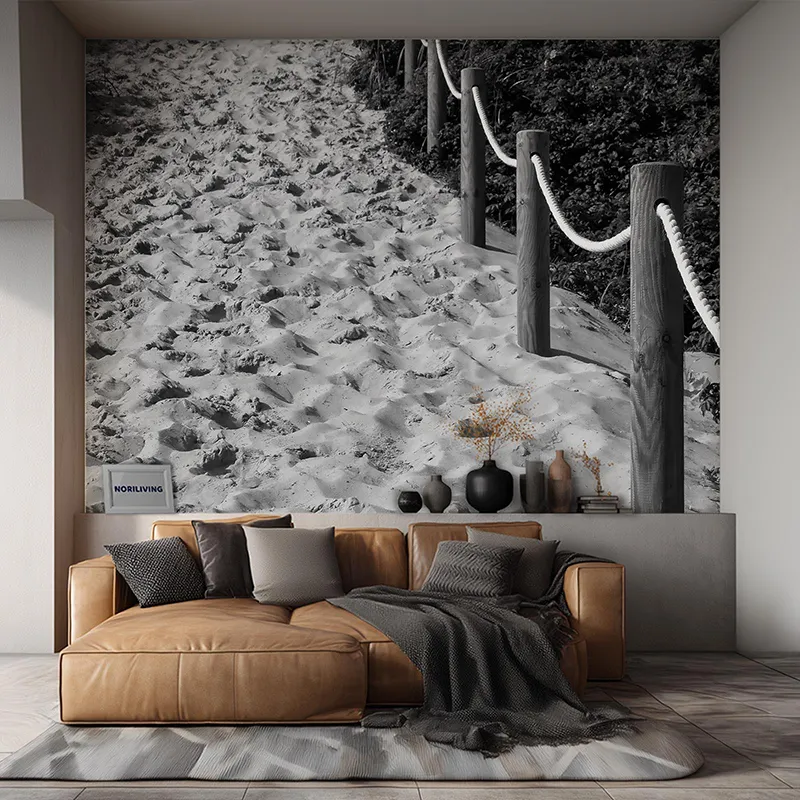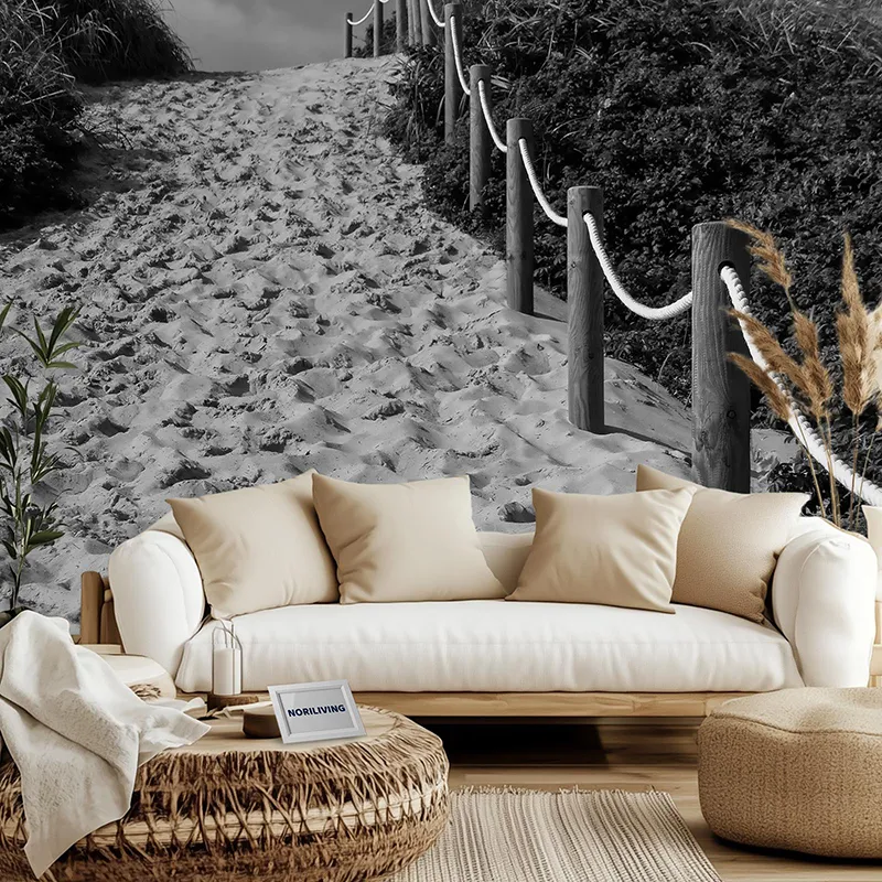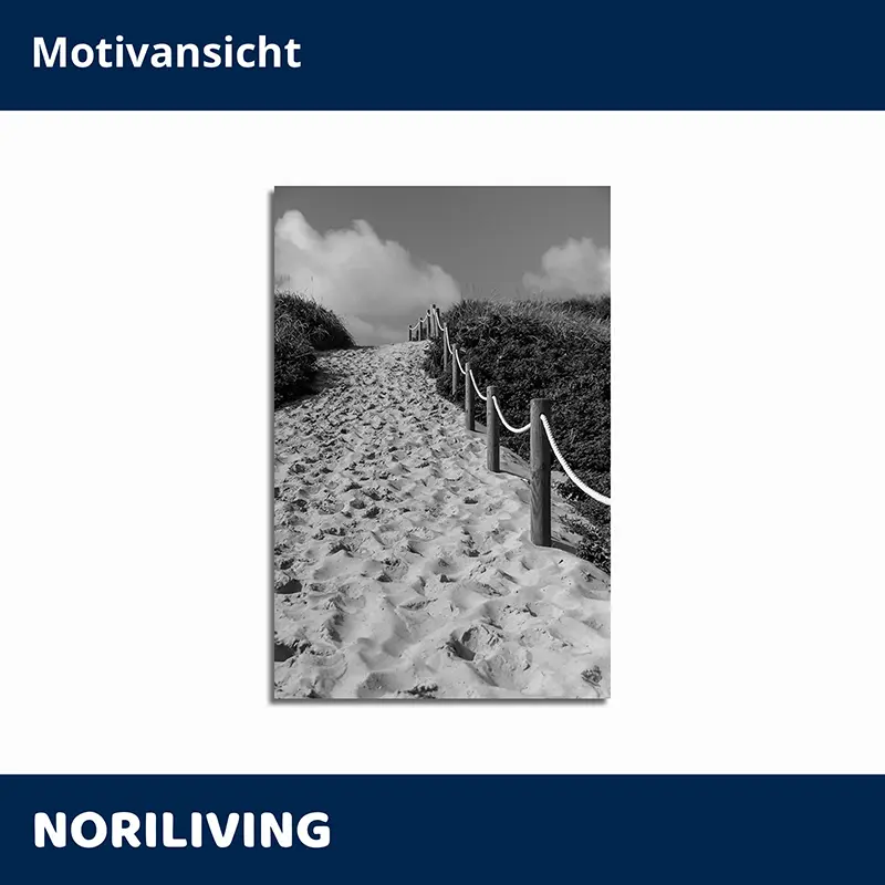 Produktinformationen "Wohnzimmerrückwand Alu Strandzugang mit Sand zwischen Dünen 305 schwarz-weiß"