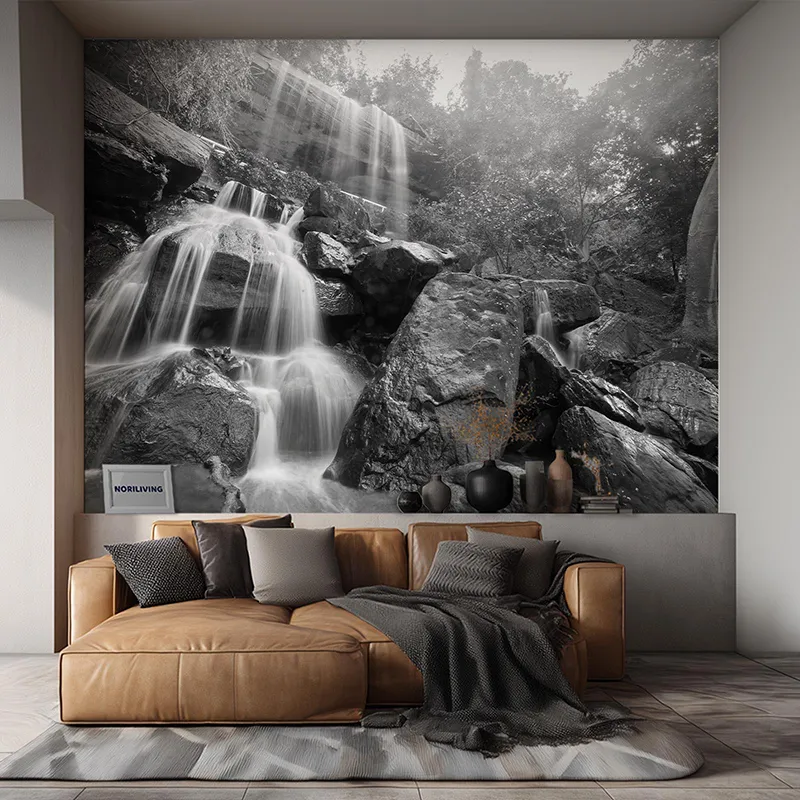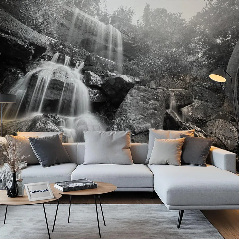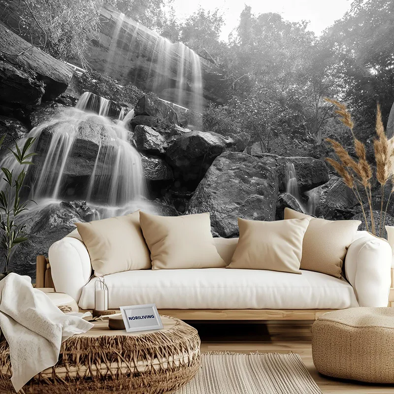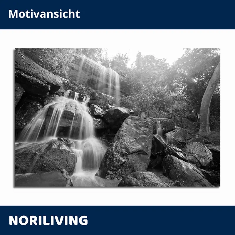 Produktinformationen "Wohnzimmerrückwand Alu Wasserfall in Thailand 374 schwarz-weiß"